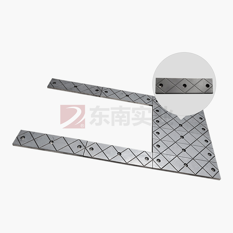 本實用新型涉及一種剪板機油缸與刀架體的連接結構,油缸缸體外周通過固定法蘭連接在機架體上,缸體的下端開口處設有密封缸體的導向套,活塞桿的下部從導向套中伸出缸體外,刀架體位于油缸的下方且設有安裝孔,安裝孔的上方連接光孔;活塞桿的下端面中心設有螺孔且旋接有雙頭螺柱,雙頭螺柱的下端穿過光孔到達安裝孔中,雙頭螺柱的下端頭旋接有防松螺母,防松螺母上方套裝有蝶簧,蝶簧與安裝孔的上端面之間設有自潤滑推力關節軸承;活塞桿的下端面為凹弧面,刀架體的上端面與活塞桿的下端面之間設有球面墊圈,球面墊圈套裝在雙頭螺柱上且球面墊圈的上弧面與活塞桿的凹弧面相配合.該連接結構制造容易,安裝快捷,連接可靠且總高度低.